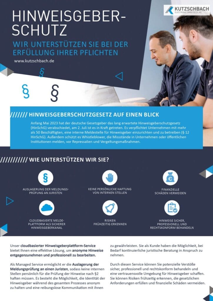 Durch diesen Service können Unternehmen potenzielle Verstöße sicher, professionell und rechtskonform behandeln und eine vertrauensvolle Umgebung für Hinweisgeber schaffen.