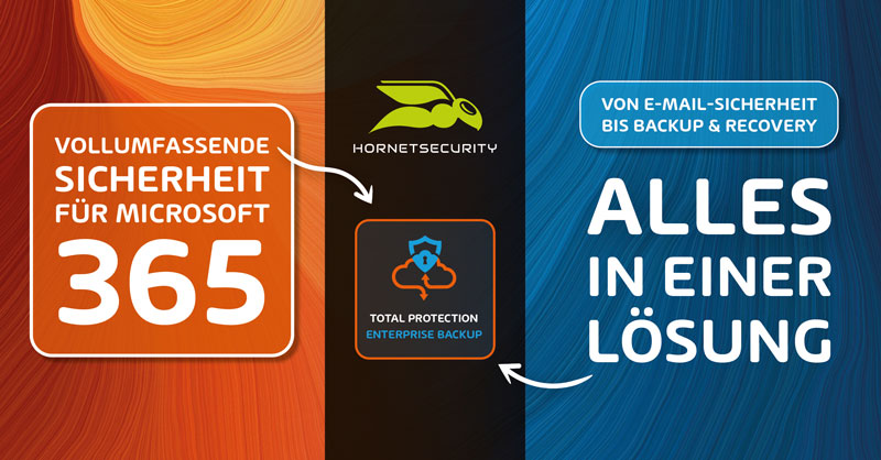 Mit 365 Total Protection Enterprise Backup verbindet Hornetsecurity seine preisgekrönten Lösungen 365 Total Protection Enterprise und 365 Total Backup zu einem einzigartigen Service, der alle Aspekte von Security, Compliance und Backup für Microsoft 365 abdeckt.