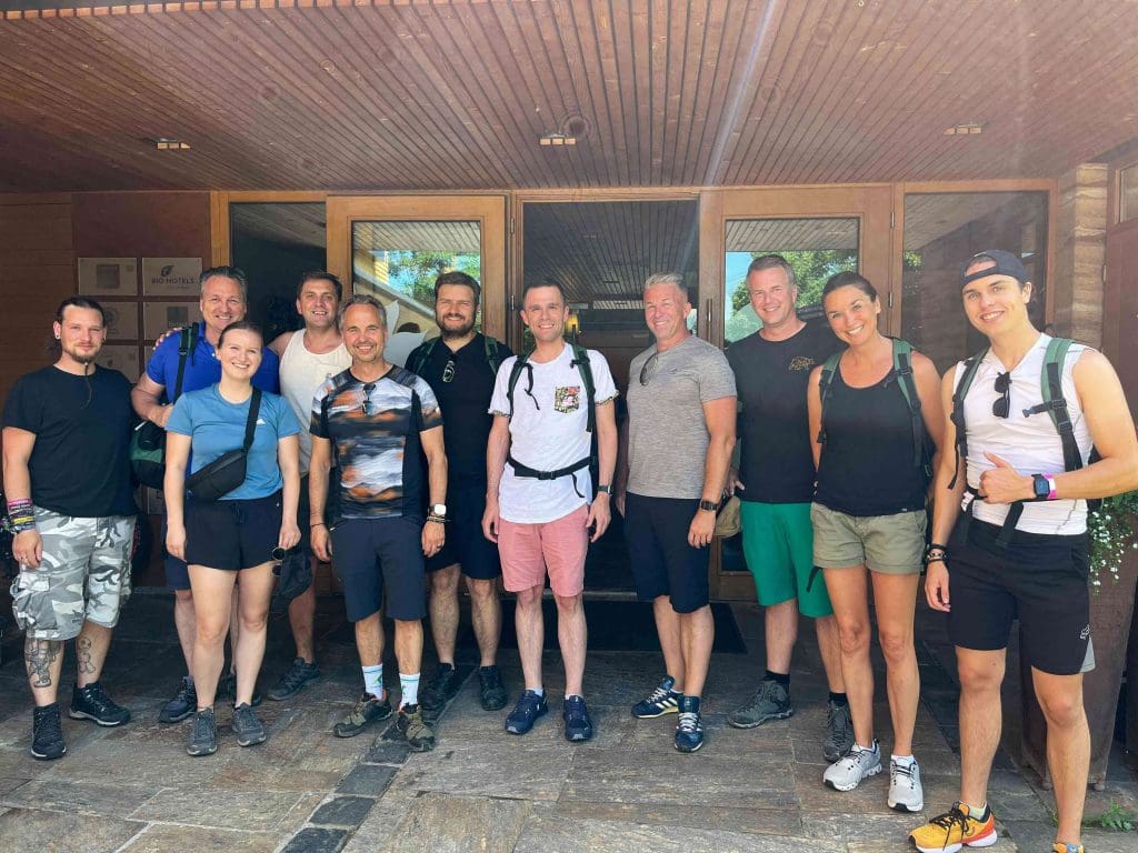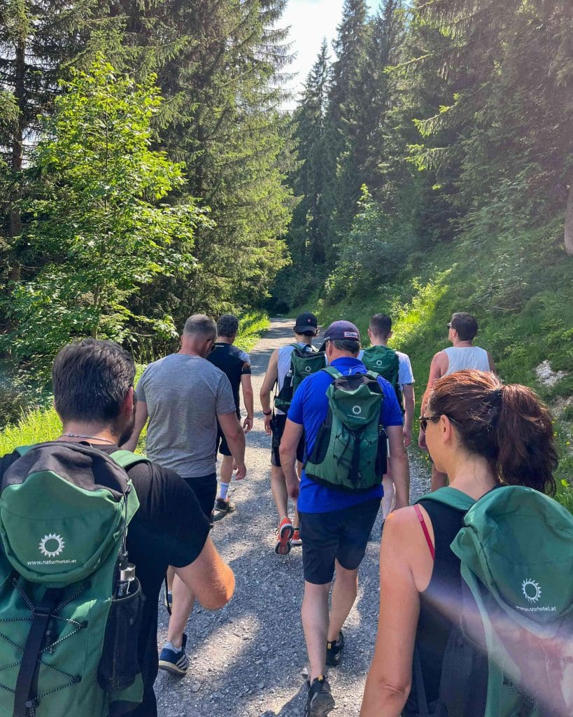 Natürlich kam auch das Miteinander nicht zu kurz: Ein echtes Highlight war unsere Wandertour im Kleinwalsertal, bei der wir vom Regen überrascht wurden. Klatschnass, aber bestens gelaunt, ging es im Anschluss direkt in den Wellnessbereich – Teambuilding mal anders!